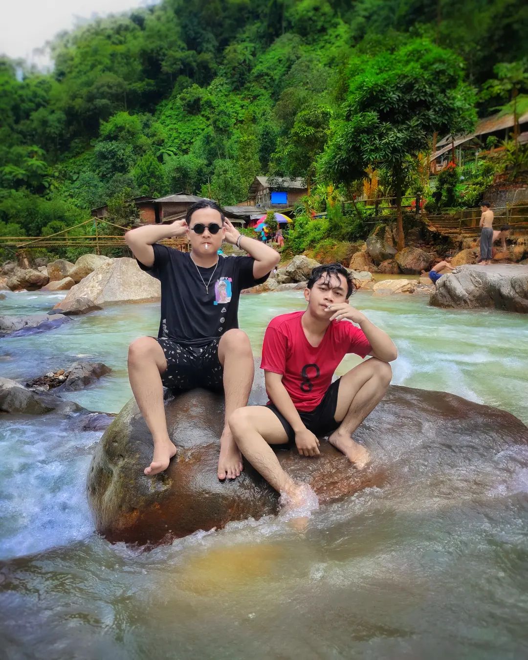 Selain itu, air panas disalurkan ke delapan pancuran di pinggir Sungai Cikuluwung. Dengan rangkaian pancuran yang demikian, suasananya bak pemandian alam pedesaan.